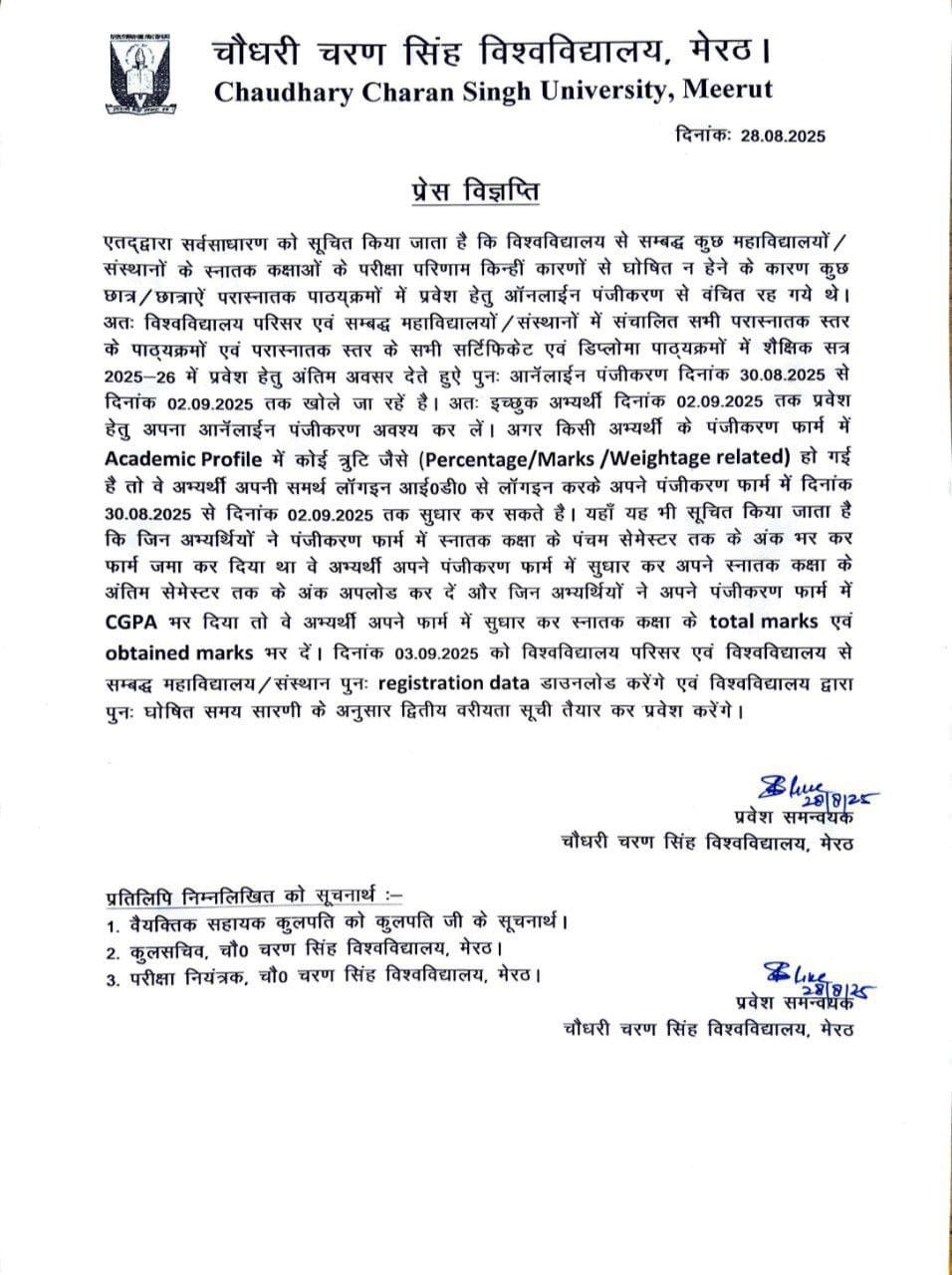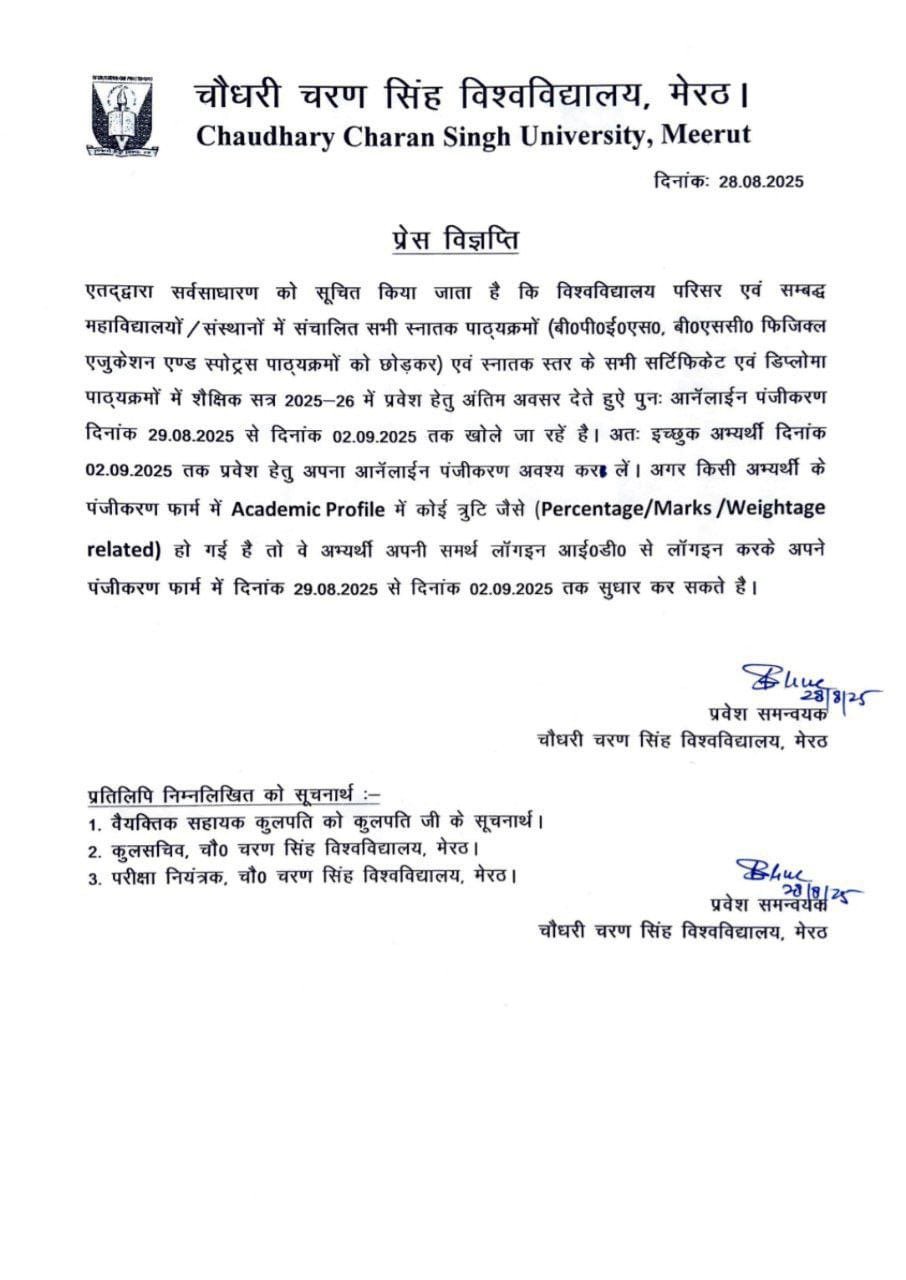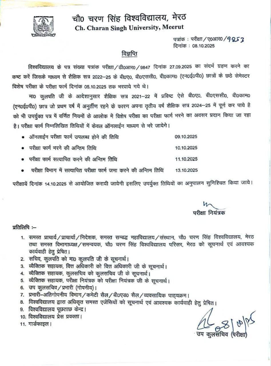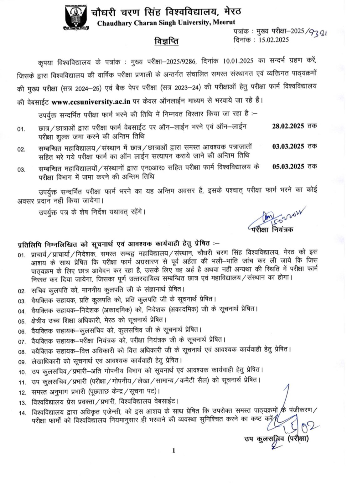 Exam Form Date Extension for Private UG and PG Courses Yearly System Main Exam-2025