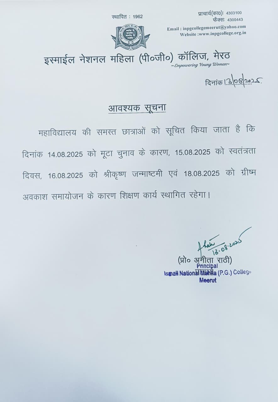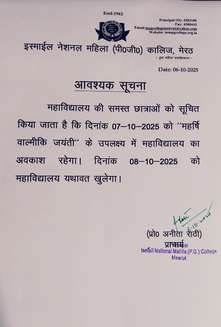 I.N.M. (P.G.) College, Meerut is going to organize One day Seminar on the topic- "Constitutional Values: The Bedrock Of A Strong Nation" on the occasion of Constitution day (26 November)