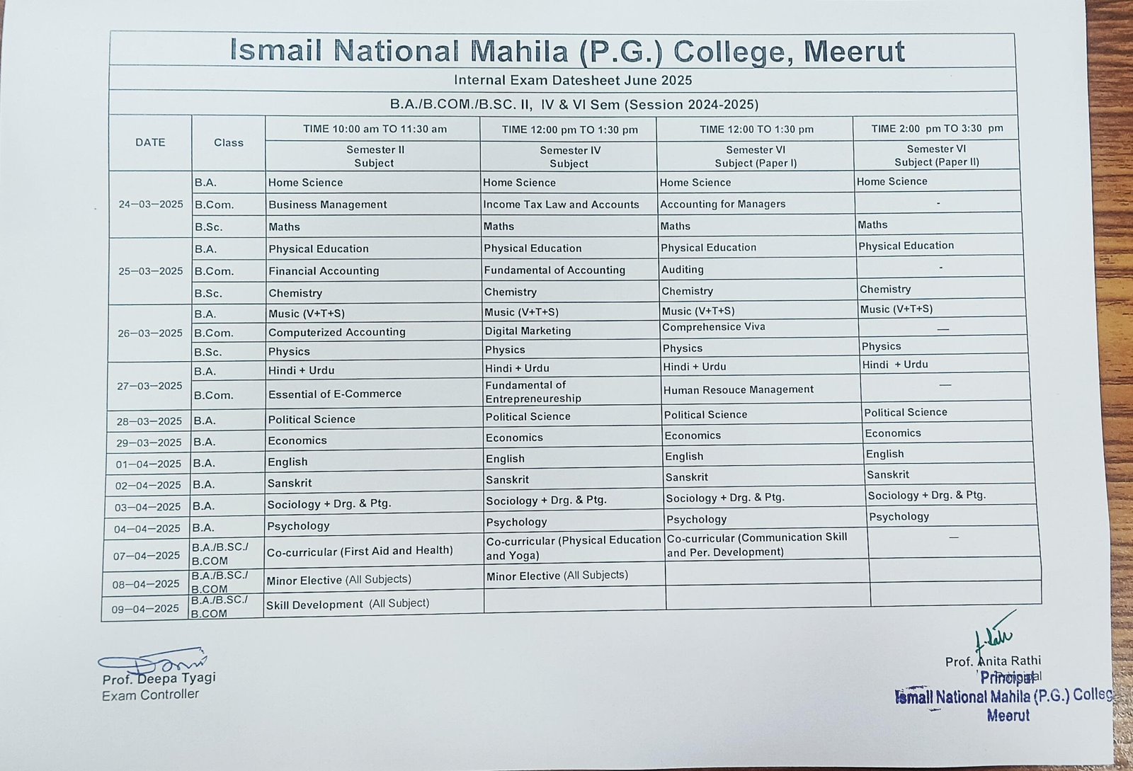 Regarding for B.A./B.COM./B.SC. II, IV & VI Semester Internal Exam Datesheet June 2025